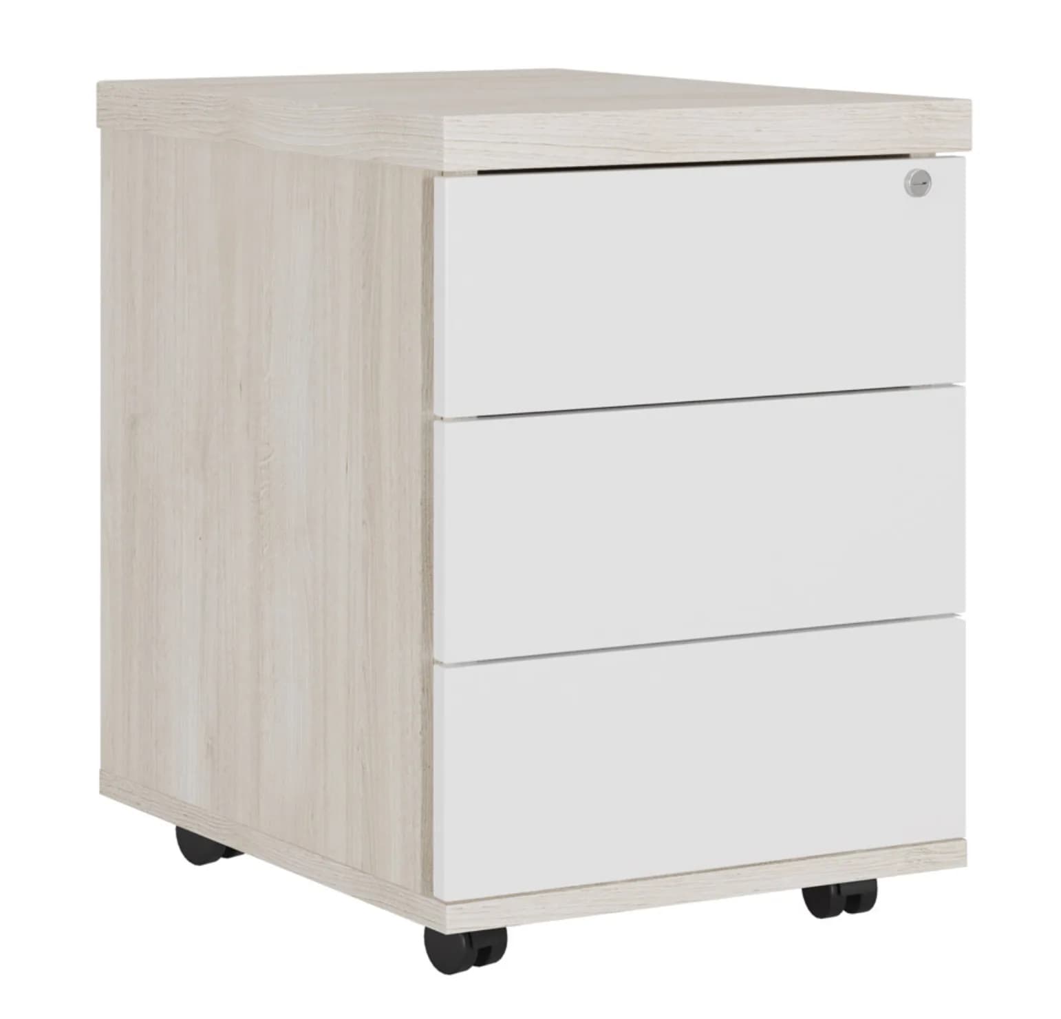 Тумба подкатная с 3 ящиками дуб шамони/белый