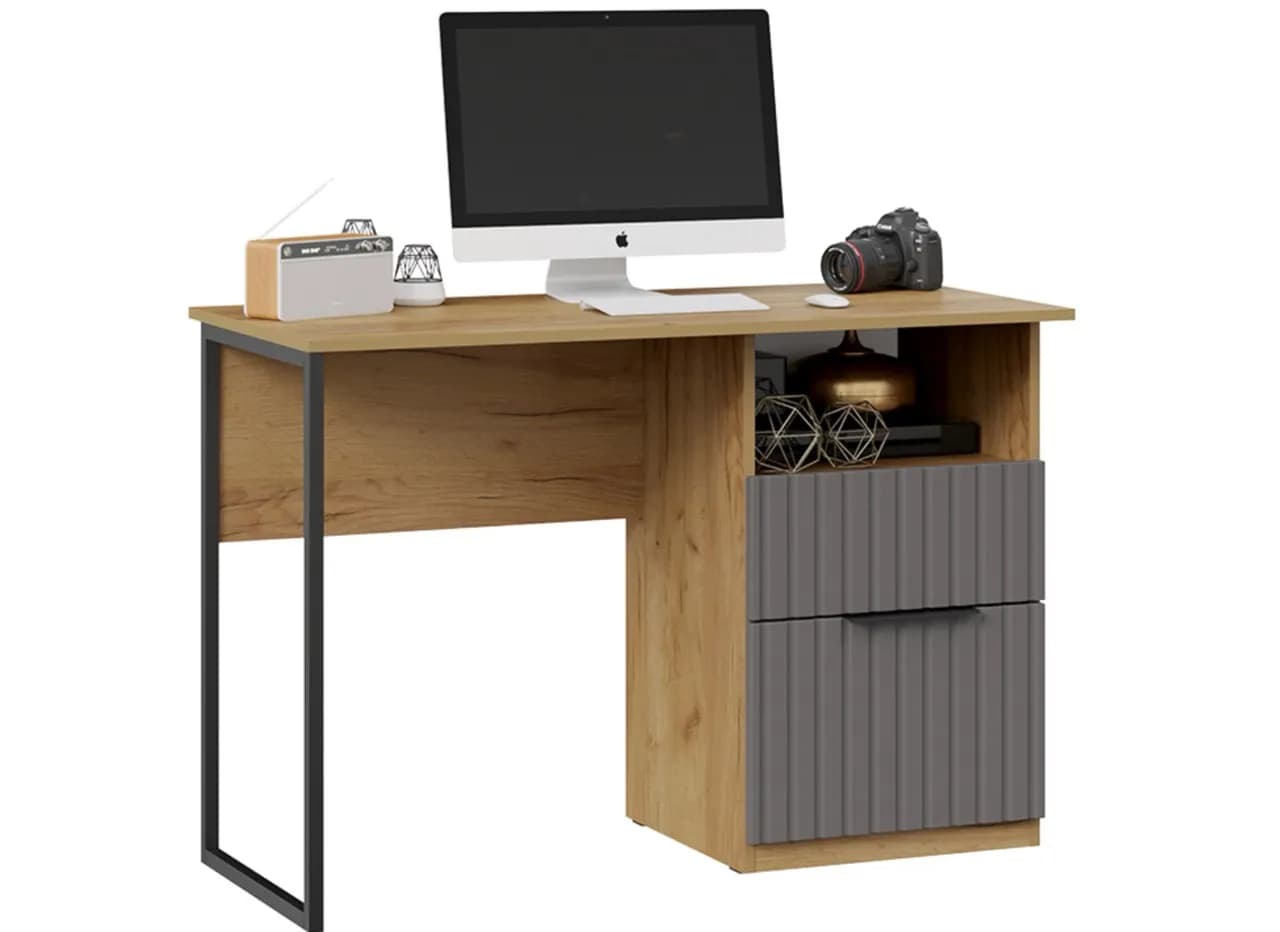 Стол письменный с тумбой на металлоопоре дуб крафт золотой/графит матовый