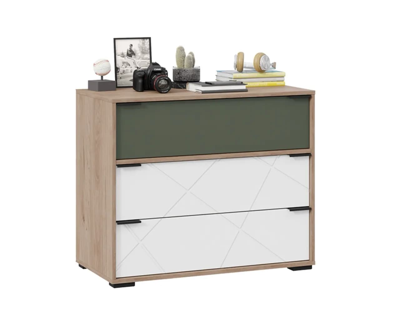 Комод - 3 ящика гиккори/дымчатый зеленый