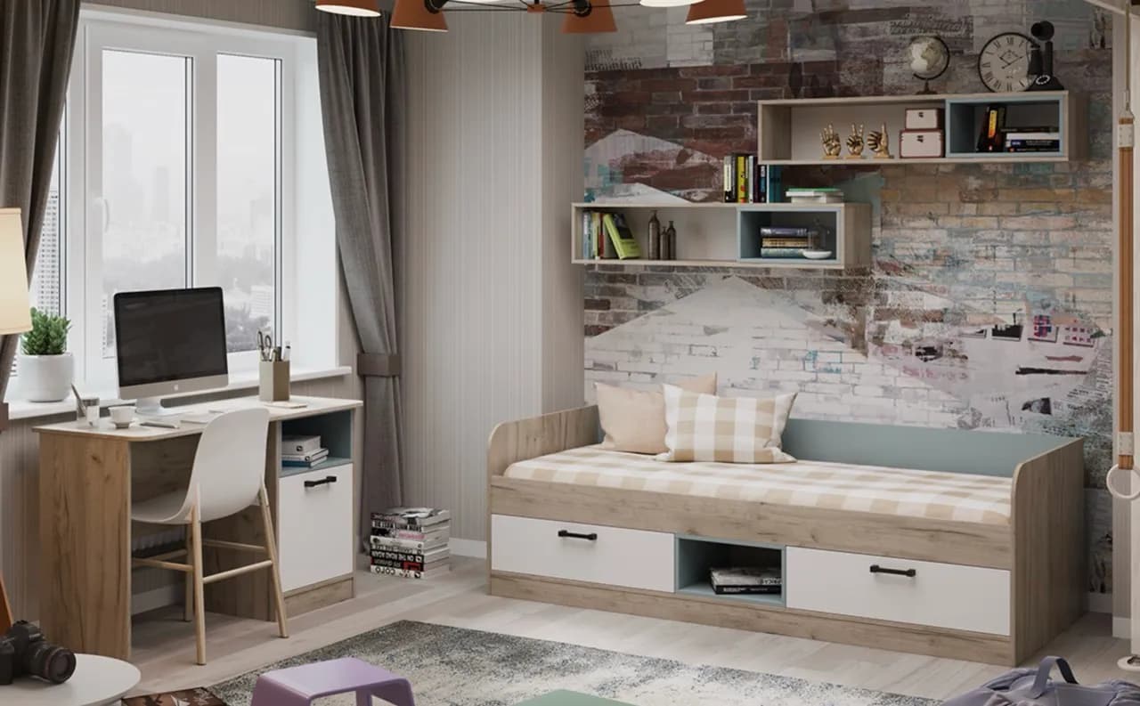 Материал: дуб крафт/белый/голубой