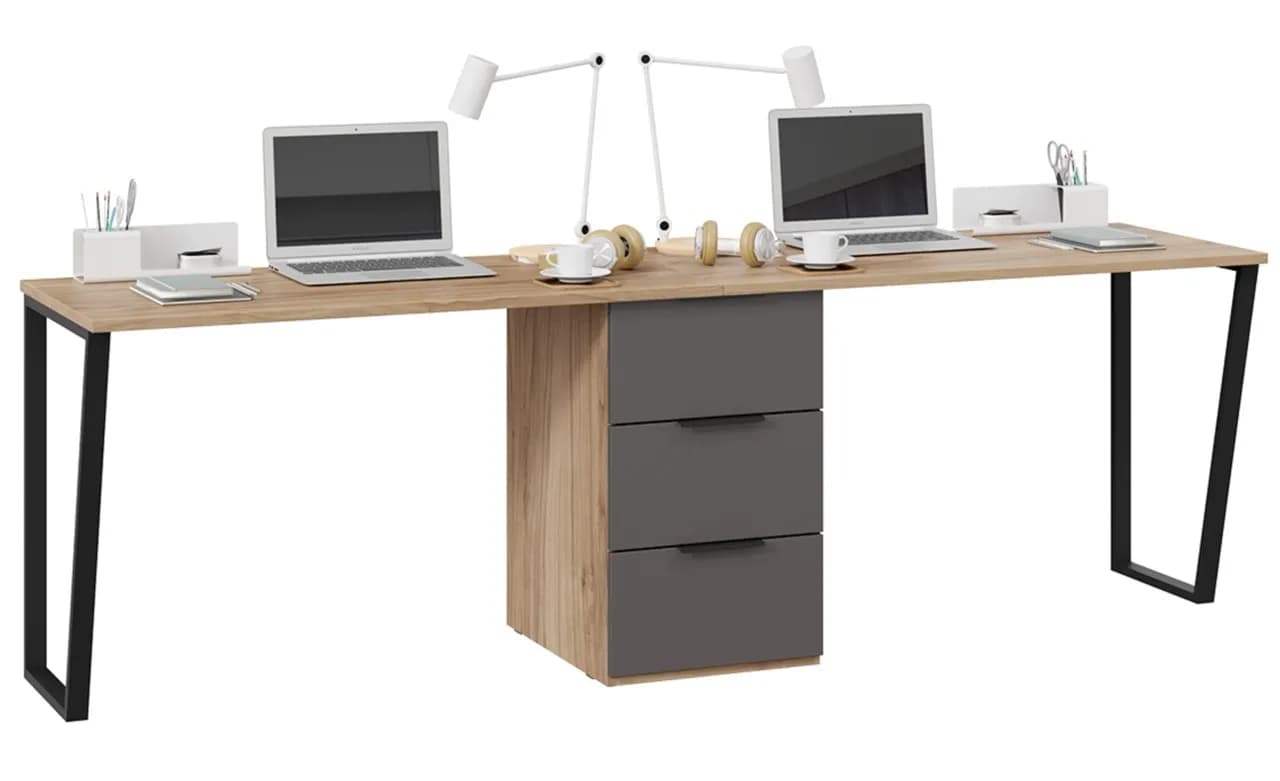 Комплект столов письменных с 1 тумбой универсальной яблоня беллуно/графит матовый