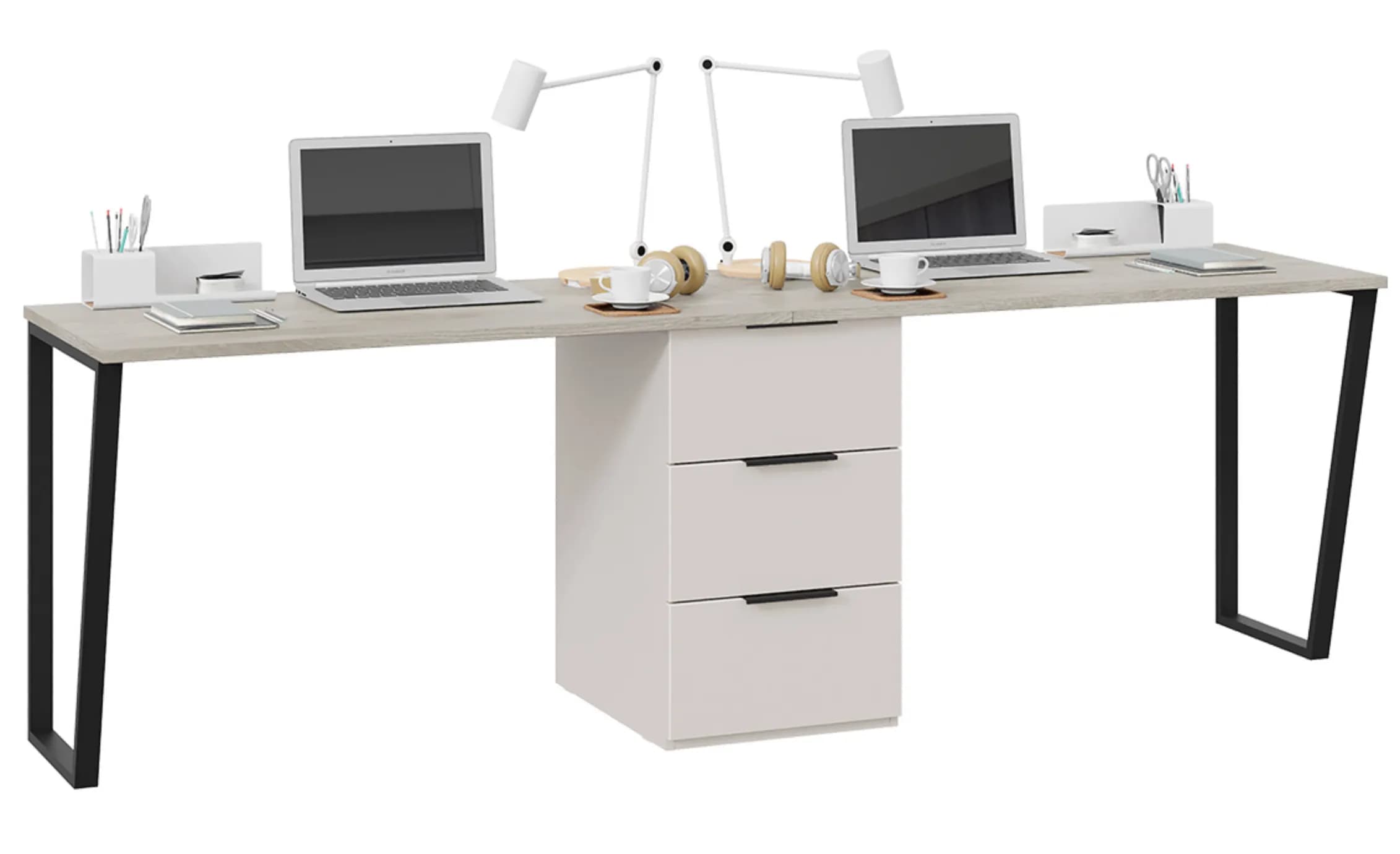 Комплект столов письменных с 1 тумбой универсальной кашемир/баттл рок