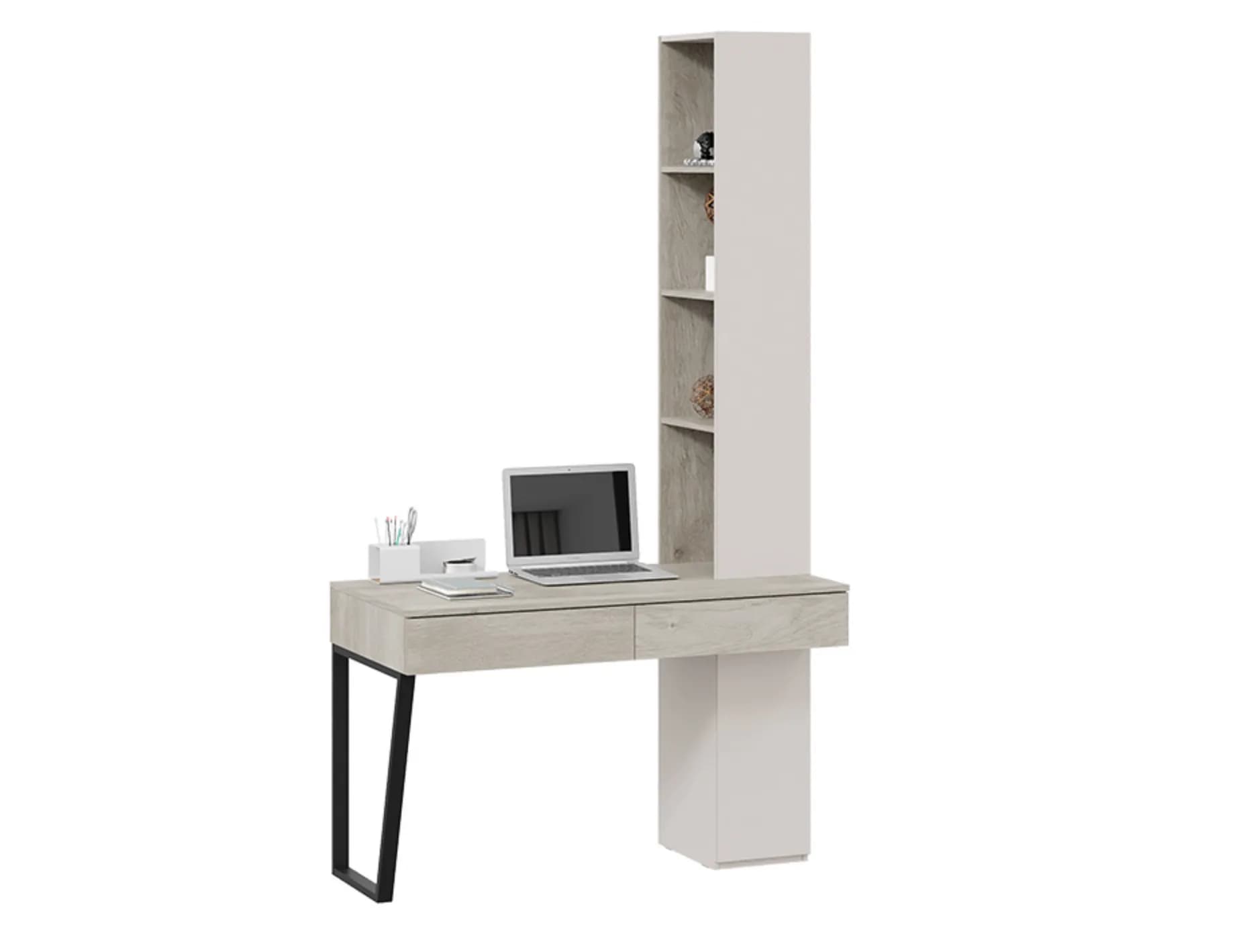 Стол письменный со шкафом комбинированным настольным и тумбой кашемир/баттл рок