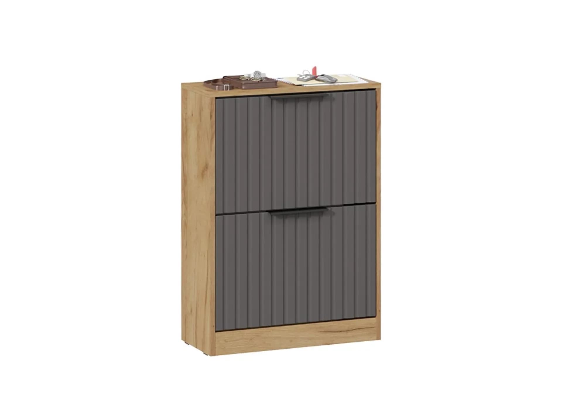 Тумба для обуви высокая - 2 ящика дуб крафт золотой/графит матовый