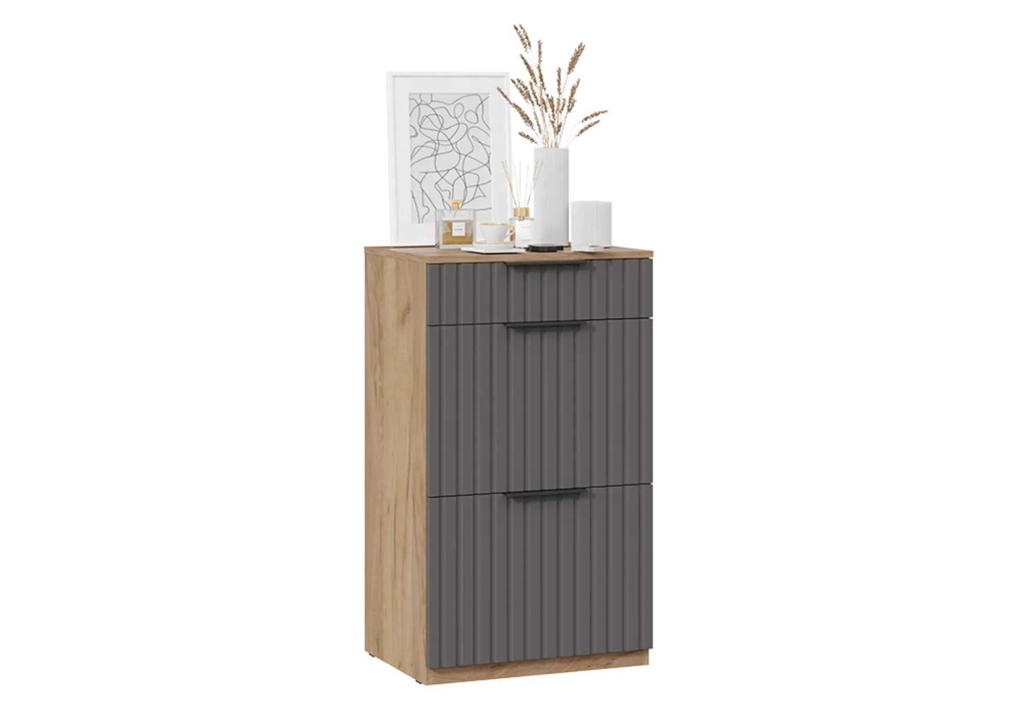 Тумба комбинированная узкая - 2 ящика дуб крафт золотой/графит матовый