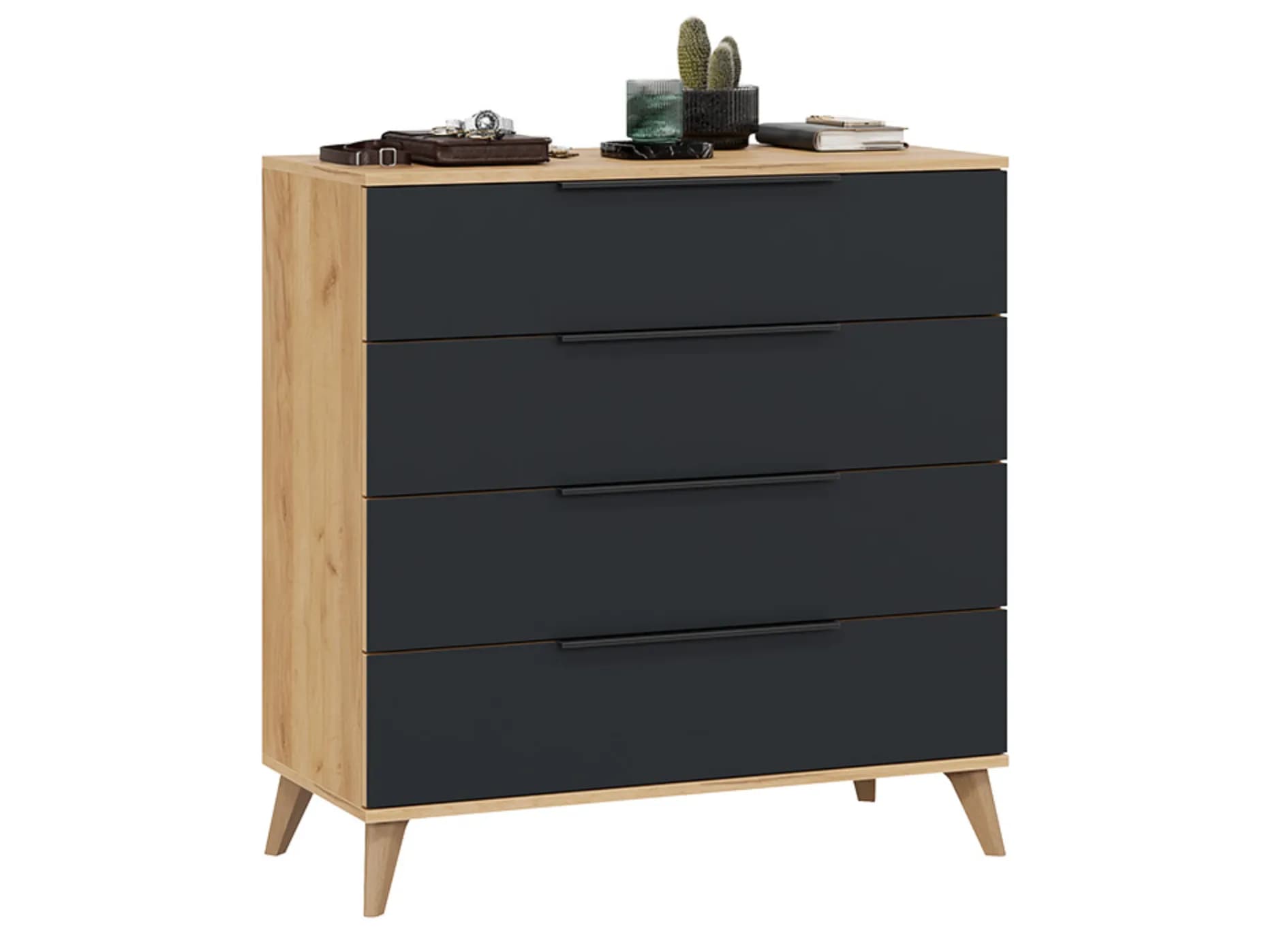 Комод - 4 ящика с опорами бук матовый дуб крафт золотой/антрацит