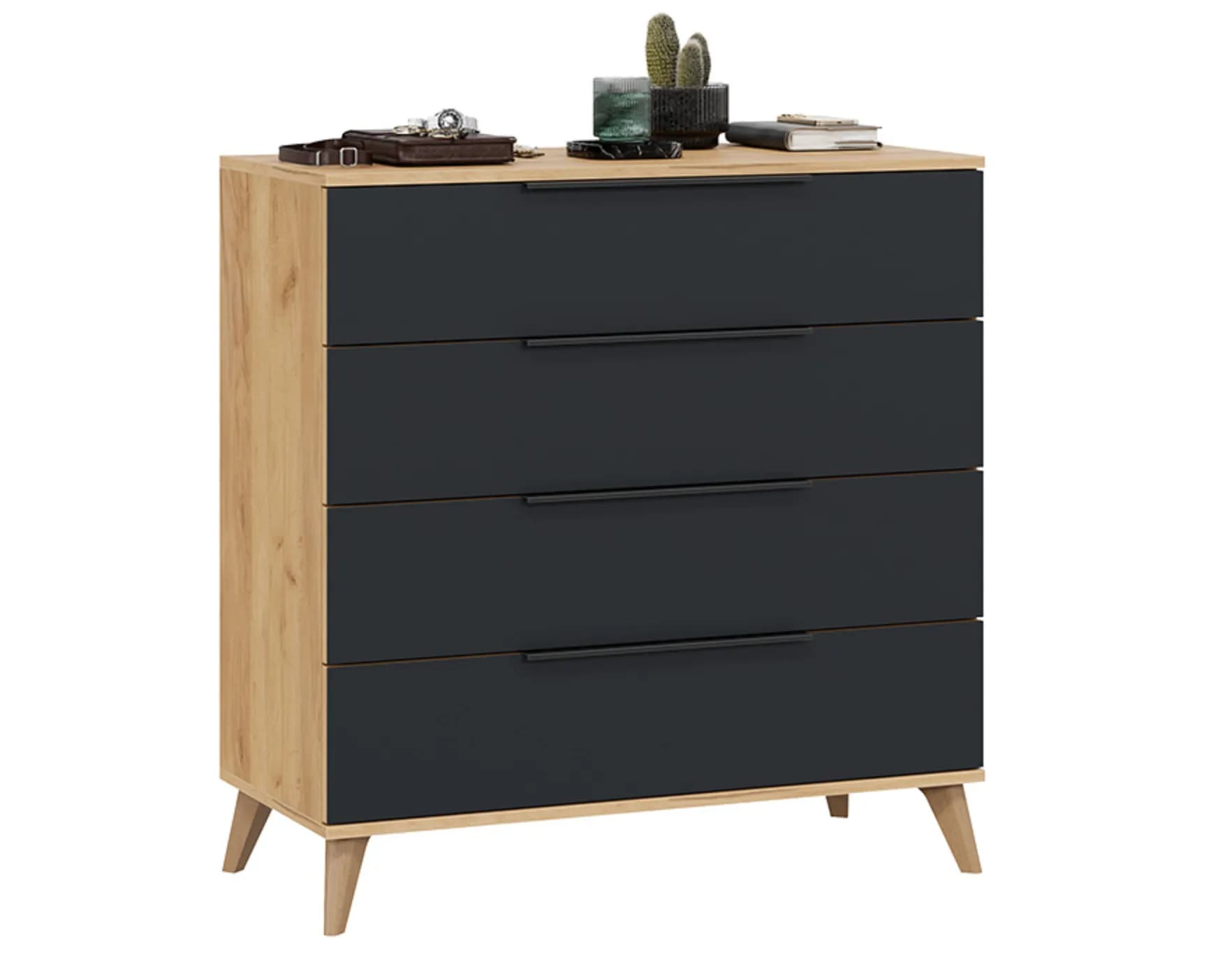 Комод - 4 ящика с опорами черный матовый дуб крафт золотой/антрацит