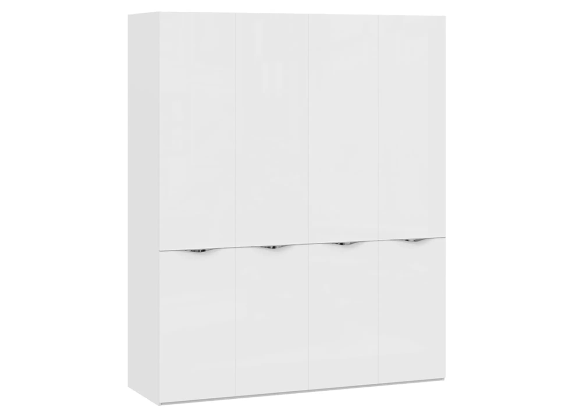 Шкаф комбинированный - 4 двери со стеклом белый глянец