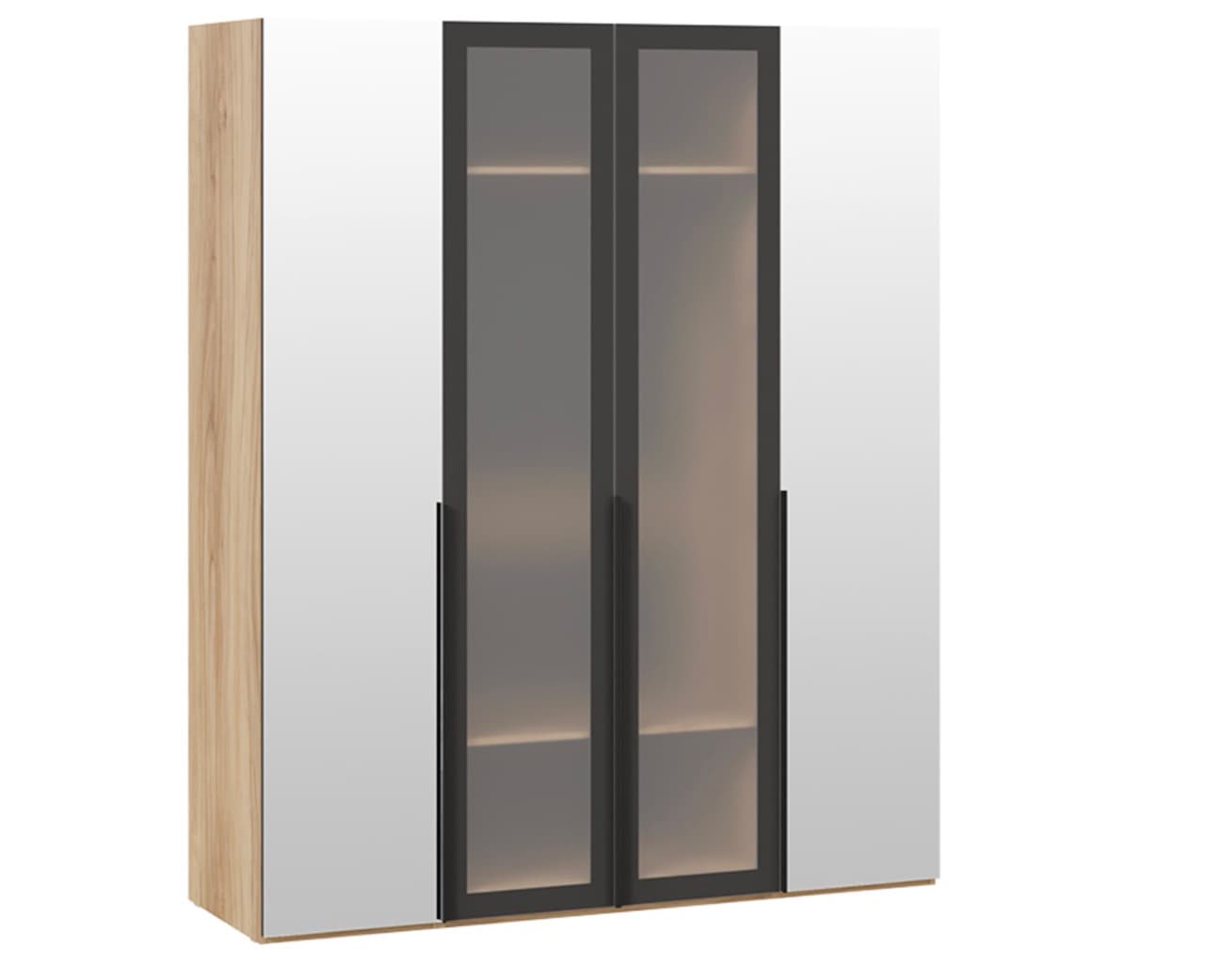 Шкаф для одежды - 2 двери зеркало /2 двери стекло сатин (глубина 58), яблоня беллуно/графит матовый