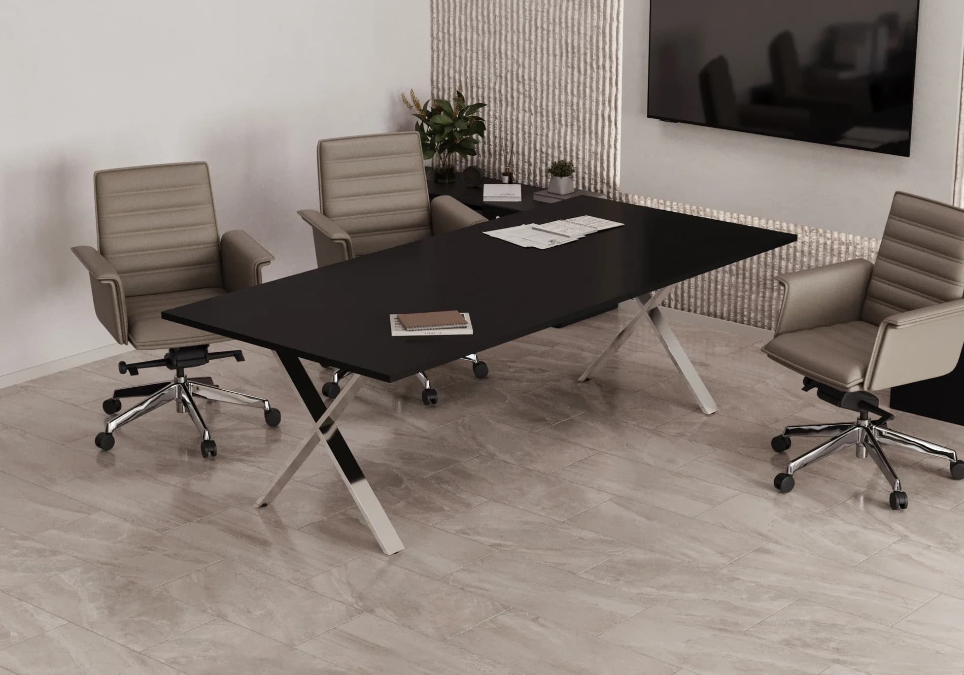 Переговорный стол Кросс базальт/чёрный