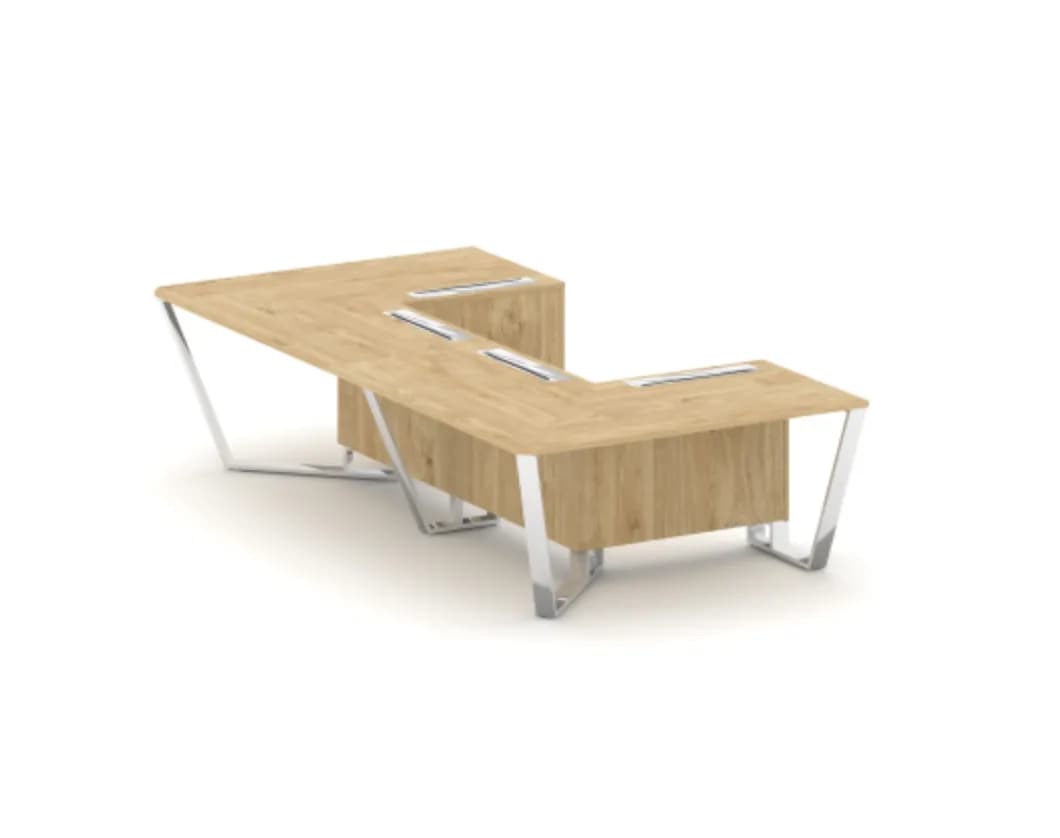 Стол переговорный П-образный 160 - хром тиквуд светлый