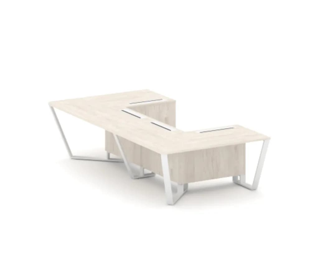 Стол переговорный П-образный 160 - металл белый денвер светлый