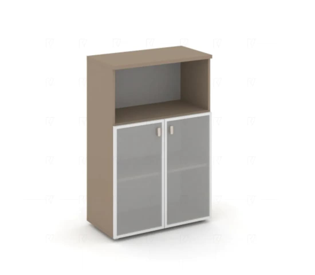 Шкаф средний широкий со стеклом в раме латте