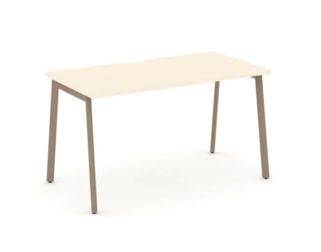 Стол письменный с вырезом на плоскоовальной опоре 1380 - металл латте сатин