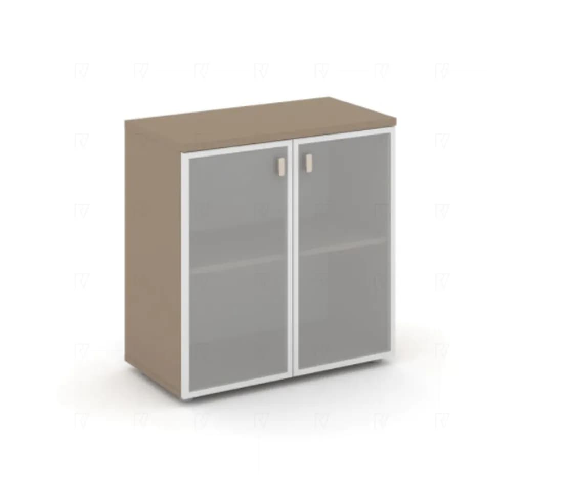 Шкаф низкий широкий со стеклом в раме латте