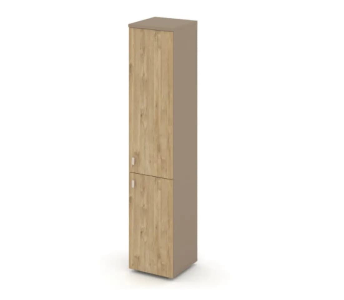 Шкаф высокий узкий левый/правый (1 низкий фасад ЛДСП + 1 средний фасад ЛДСП) - основание латте тиквуд светлый