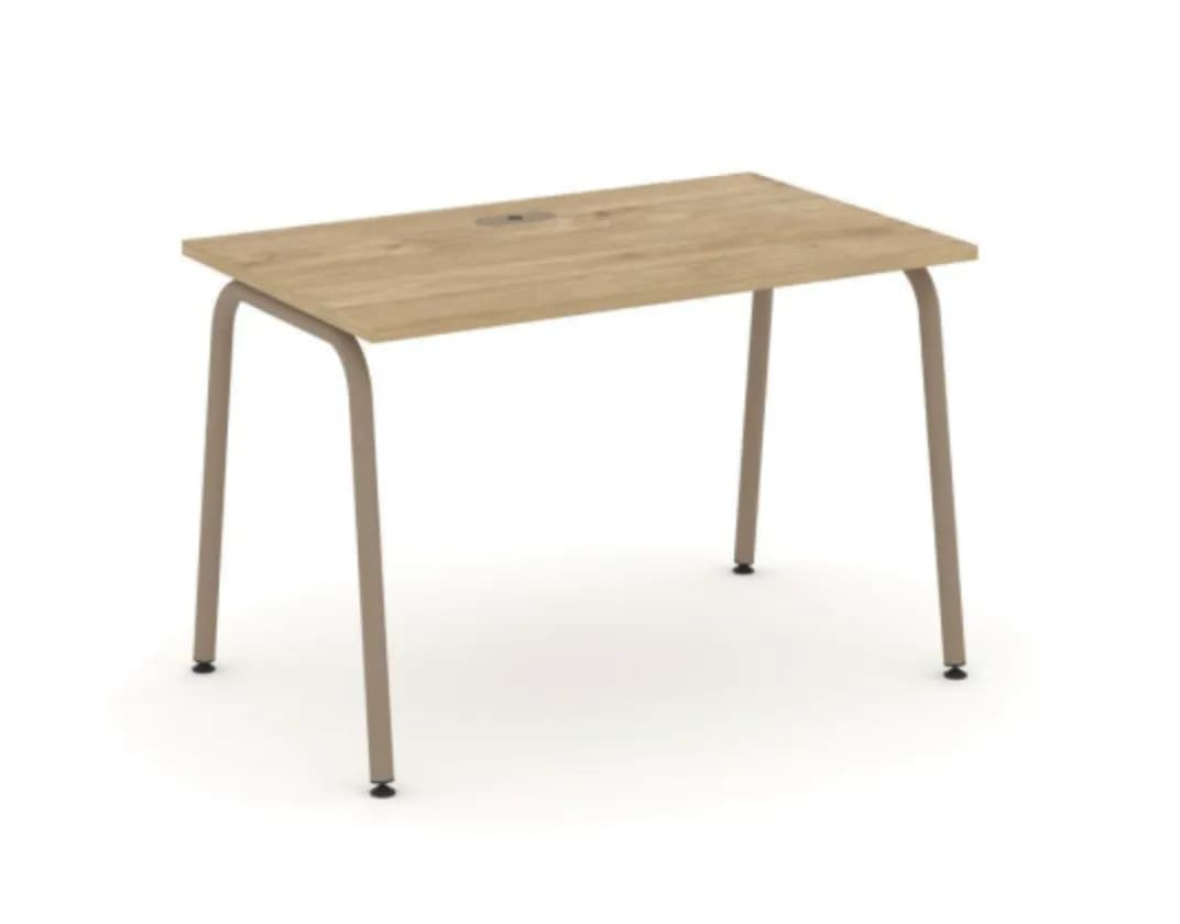Стол письменный с лючком на круглой опоре 1180 - металл латте тиквуд светлый