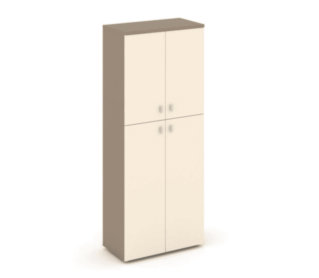 Шкаф высокий широкий (2 средних фасада ЛДСП + 2 низких фасада ЛДСП) - основание латте, сатин