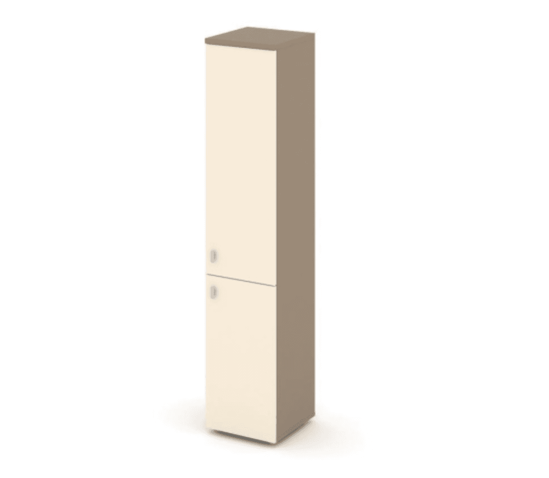 Шкаф высокий узкий левый/правый (1 низкий фасад ЛДСП + 1 средний фасад ЛДСП) - основание латте, сатин