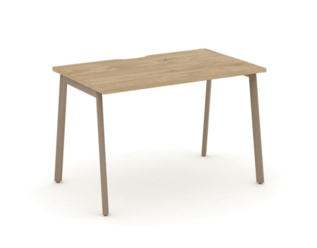 Стол письменный с вырезом на плоскоовальной опоре 1180 - металл латте, тиквуд светлый