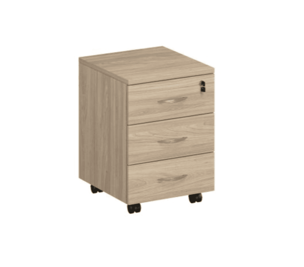 Тумба выкатная 3-ящичная с замком, вяз светлый
