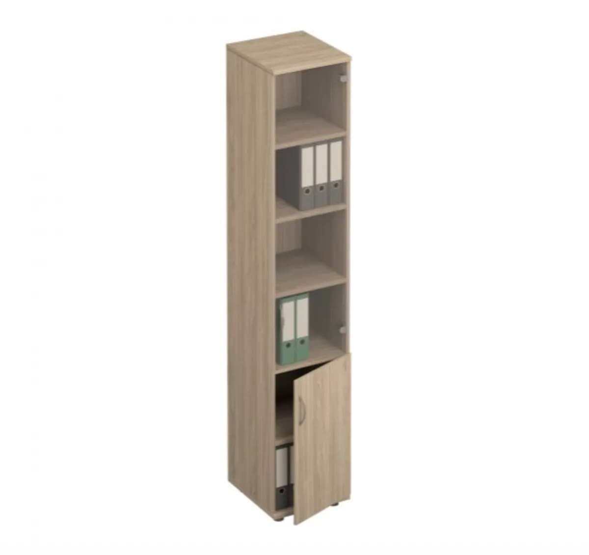 Шкаф для документов узкий со стеклом вяз светлый