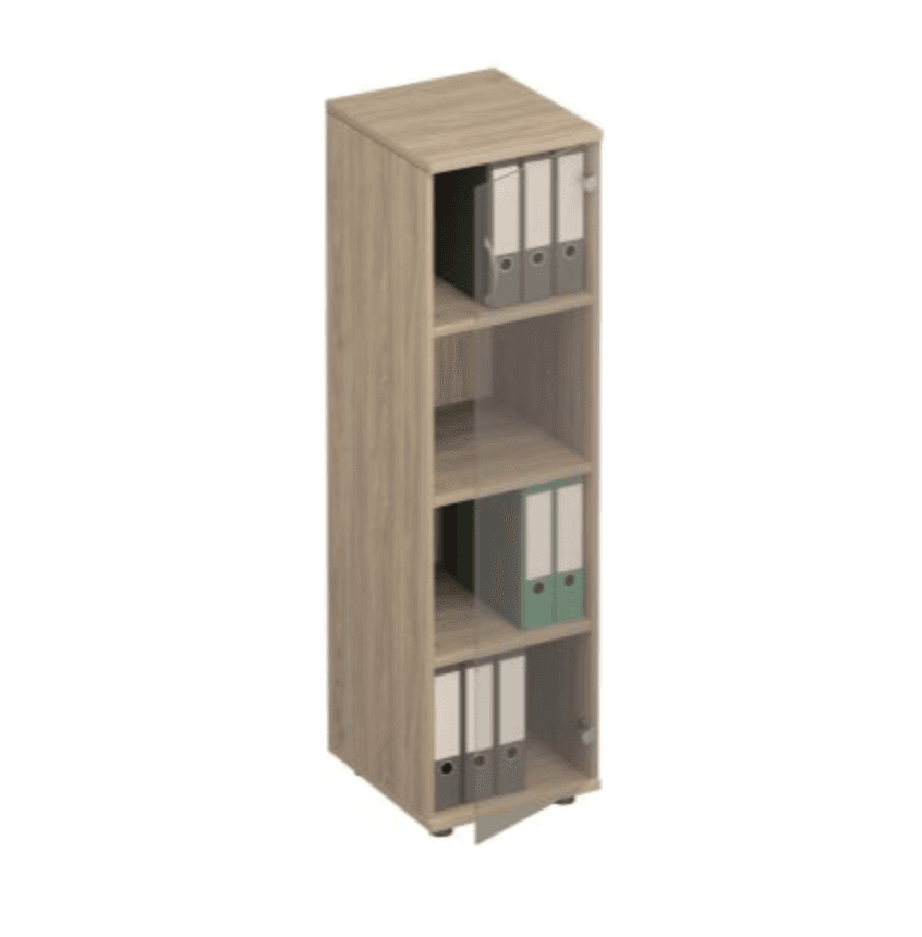 Шкаф для документов узкий средний со стеклом, вяз светлый