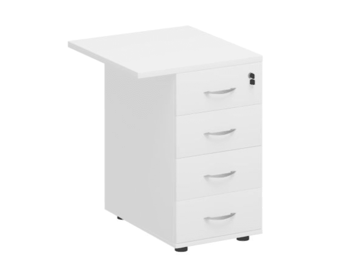 Тумба приставная, 4 ящика с замком, белый