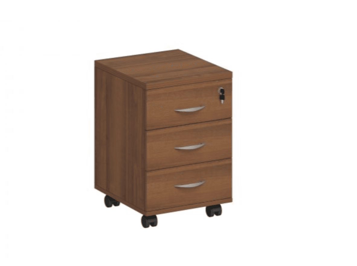 Тумба выкатная, 3 ящика с центральным замком, французский орех