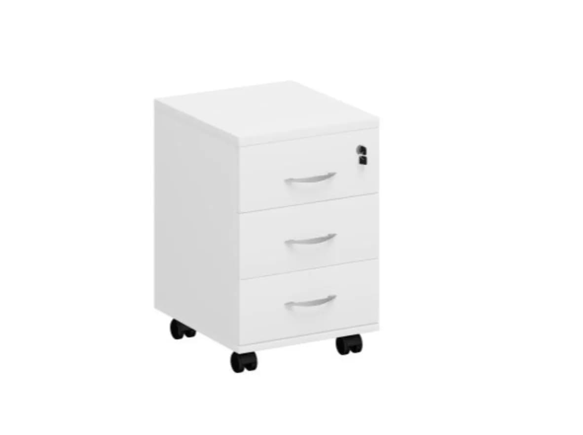 Тумба выкатная, 3 ящика с центральным замком белый