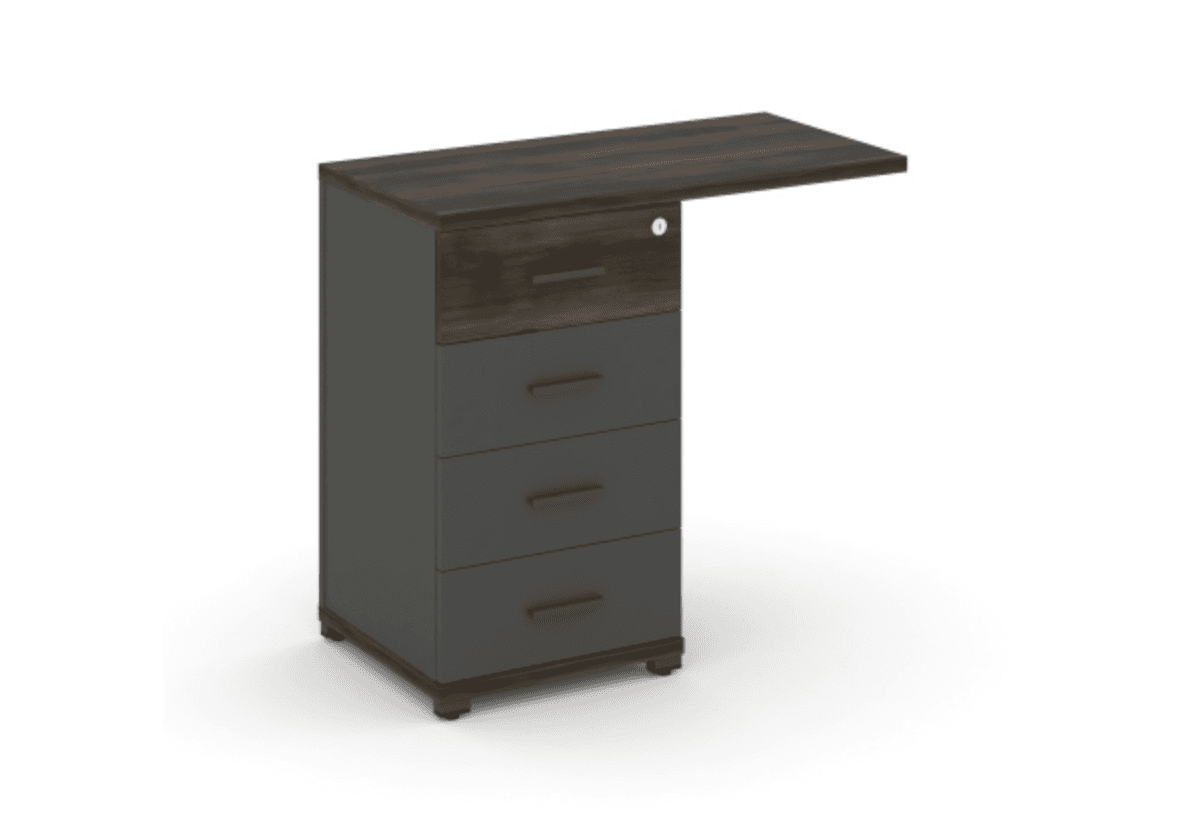 Тумба приставная узкая со свесом 4 ящика - антрацит, дуб мали