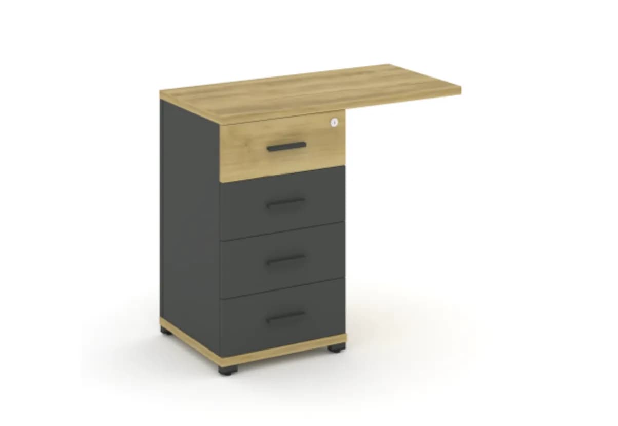 Тумба приставная узкая со свесом 4 ящика - антрацит дуб винченцо