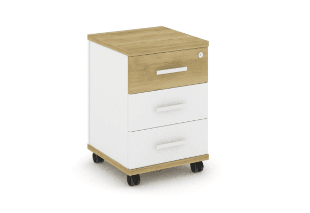 Тумба мобильная 3 ящика - белый, дуб винченцо