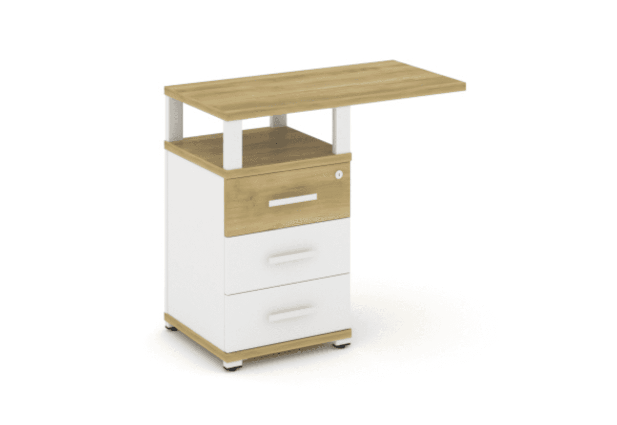 Тумба приставная узкая 3 ящика со свесом с надставкой широкой - белый, дуб винченцо