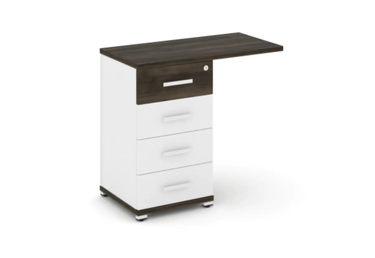 Тумба приставная узкая со свесом 4 ящика - белый дуб мали