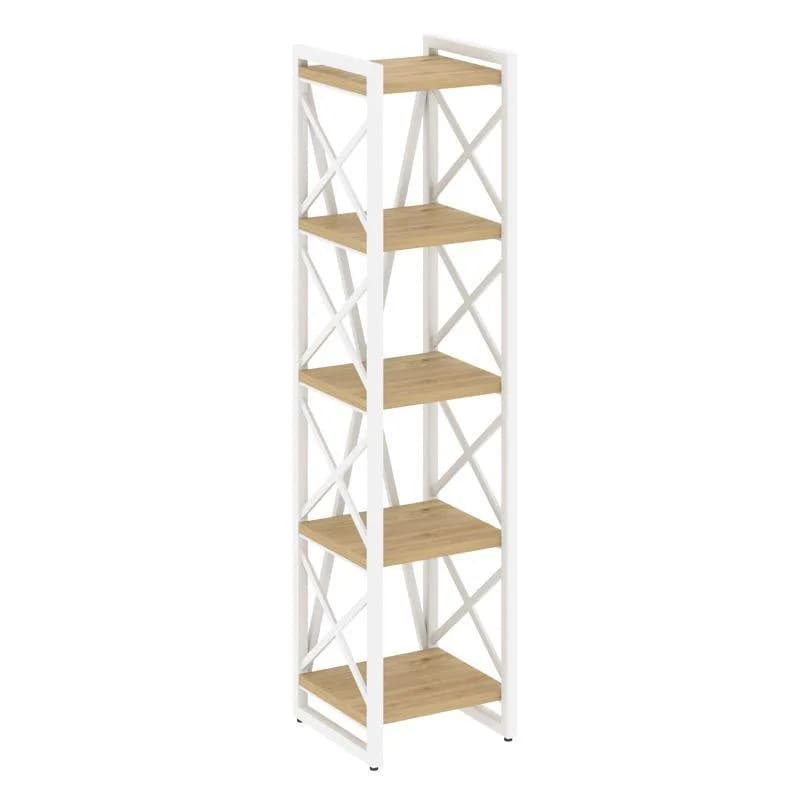 Стеллаж на регулируемых опорах - 5 полок - металл белый тиквуд светлый