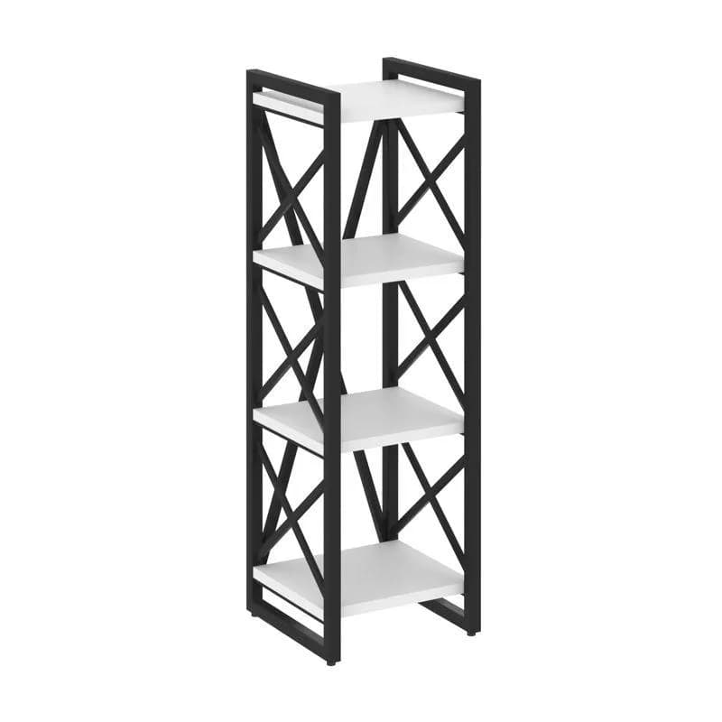 Стеллаж на регулируемых опорах - 4 полки - металл черный белый бриллиант