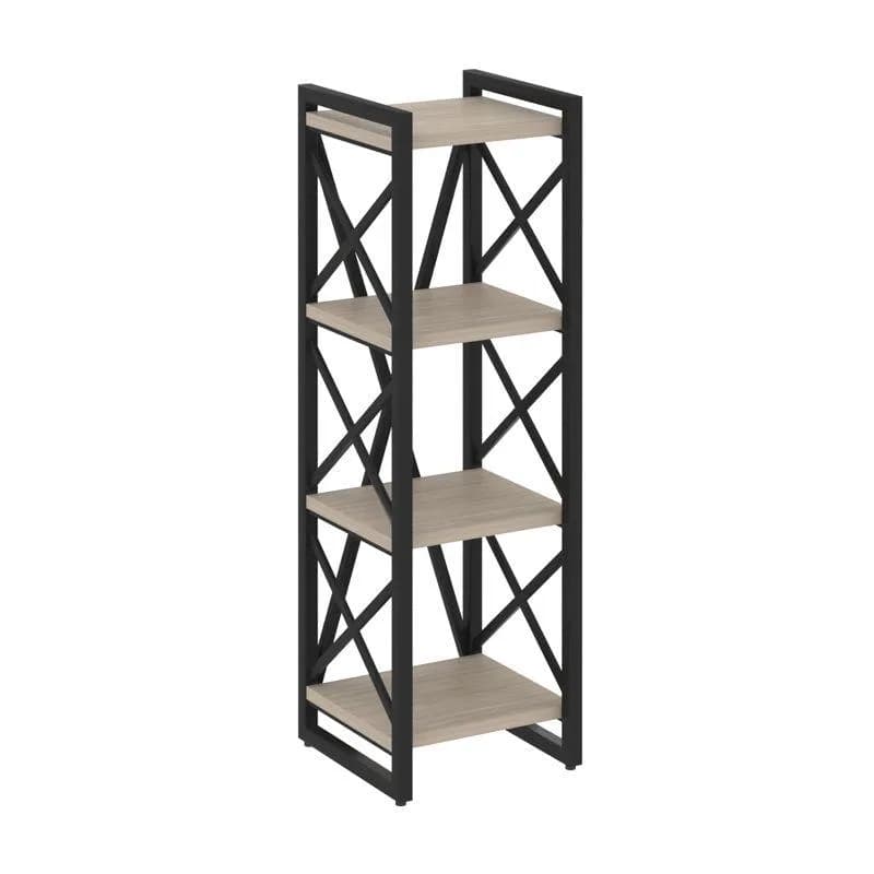 Стеллаж на регулируемых опорах - 4 полки - металл черный дуб аттик