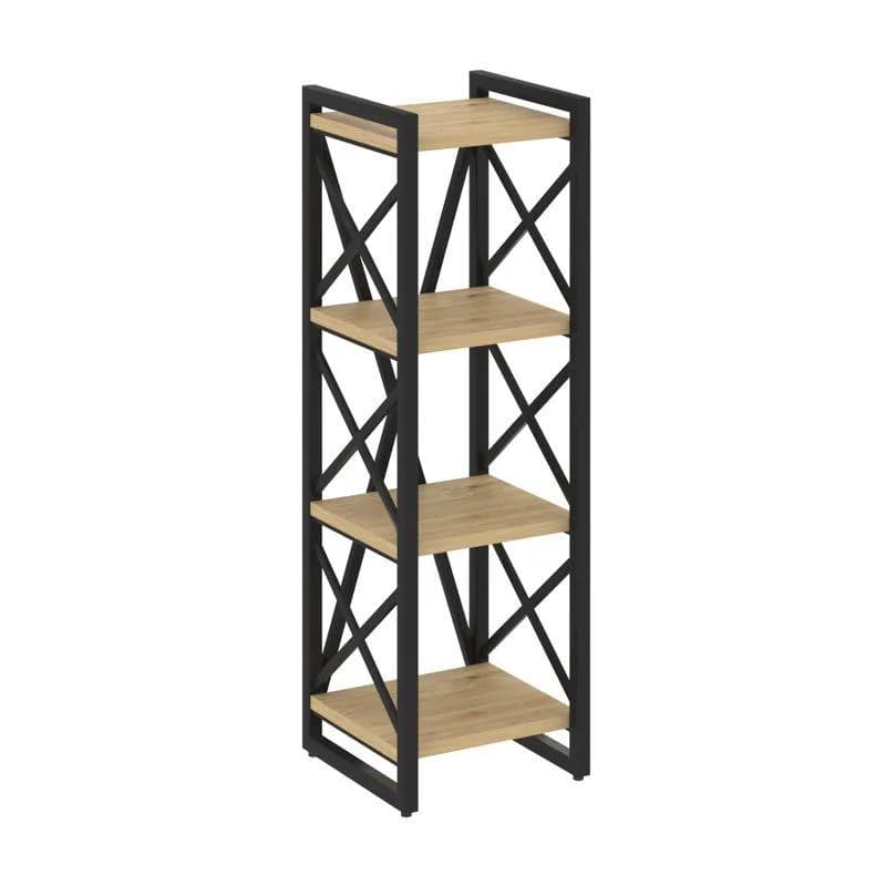 Стеллаж на регулируемых опорах - 4 полки - металл черный тиквуд светлый