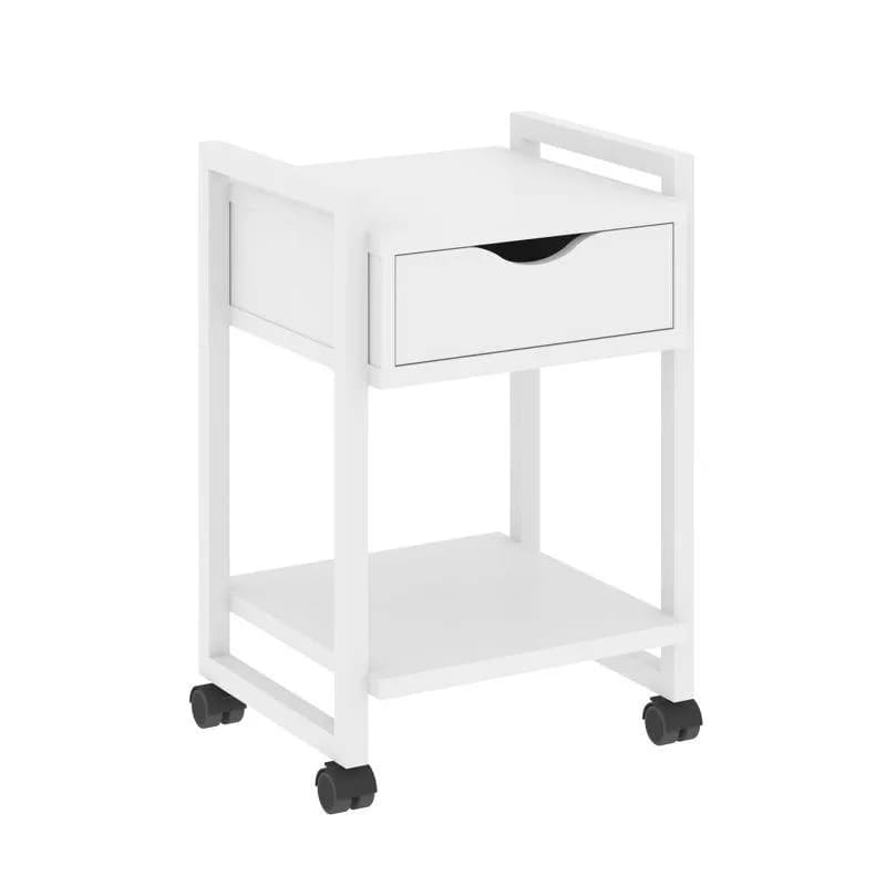 Тумба на колесных опорах с ящиком и полкой - металл белый белый бриллиант