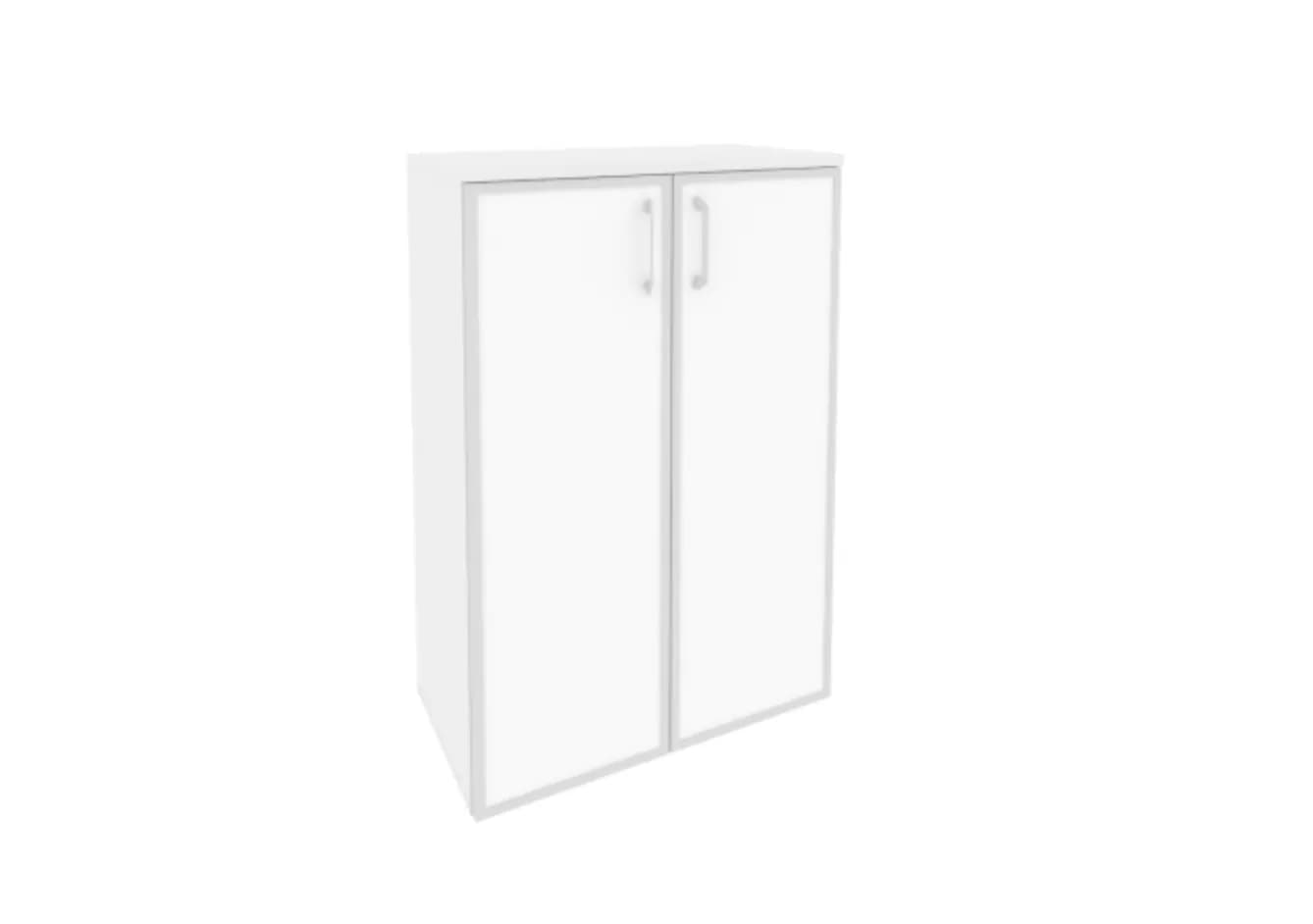 Шкаф средний широкий (2 средних фасада стекло лакобель в раме) белый бриллиант