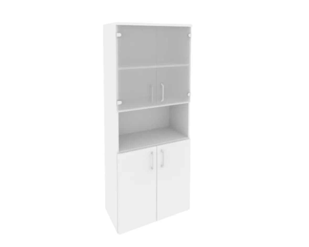 Шкаф высокий широкий (2 низких фасада ЛДСП + 2 низких фасада стекло) белый бриллиант