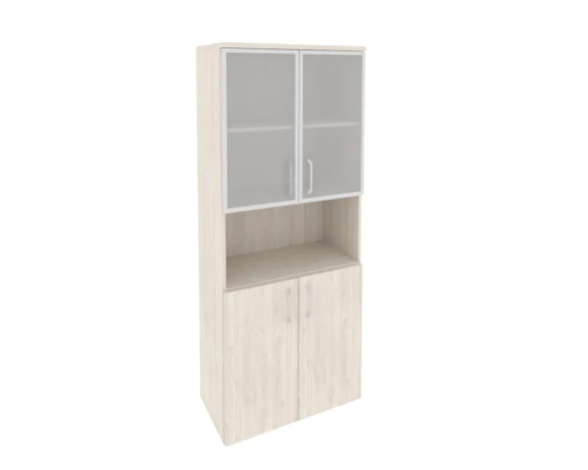 Шкаф высокий широкий (2 низких фасада ЛДСП + 2 низких фасада стекло в раме) денвер светлый