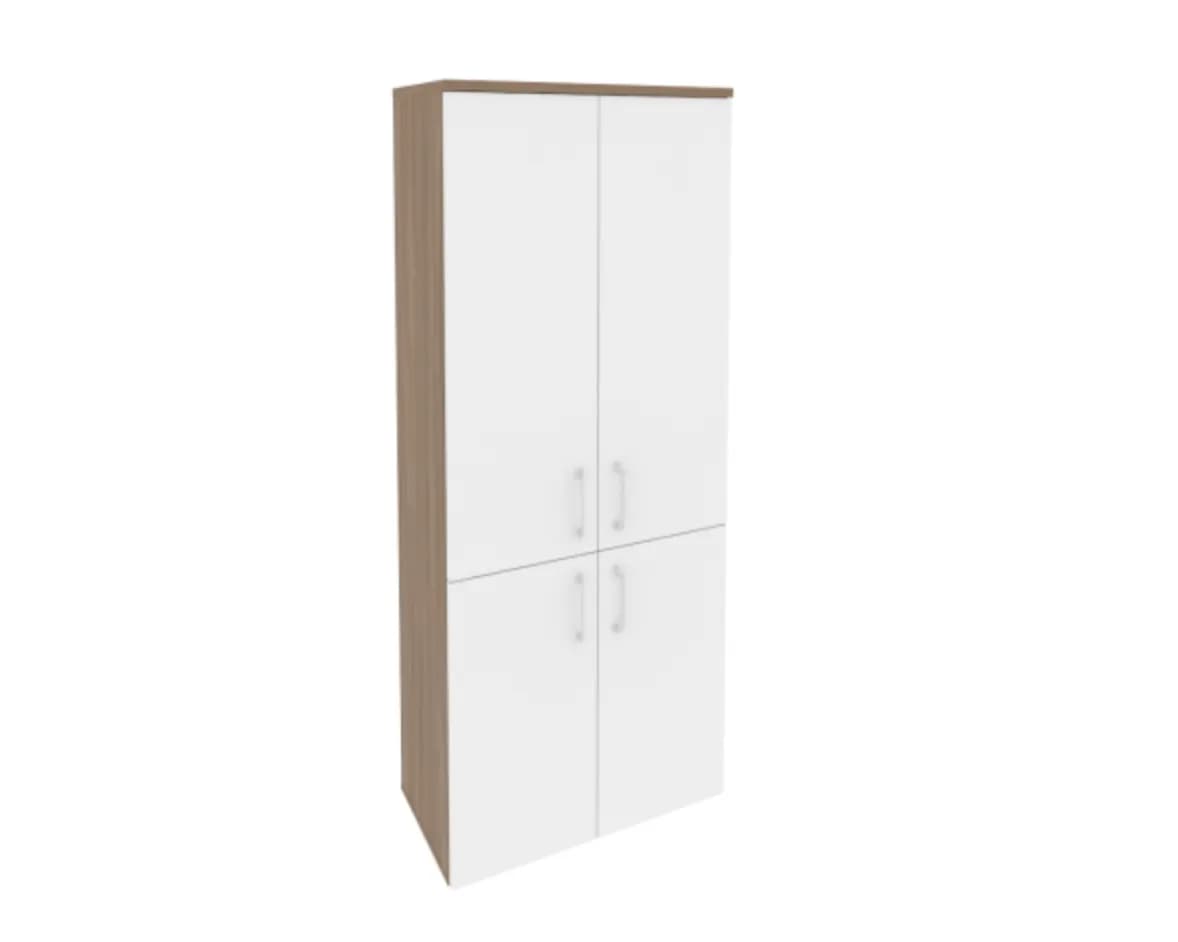 Шкаф высокий широкий (2 низких фасада ЛДСП + 2 средних фасада ЛДСП) фасад белый бриллиант дуб аризона