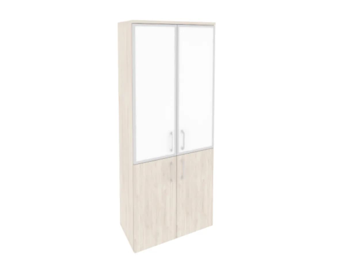 Шкаф высокий широкий (2 низких фасада ЛДСП + 2 средних фасада стекло лакобель в раме) денвер светлый