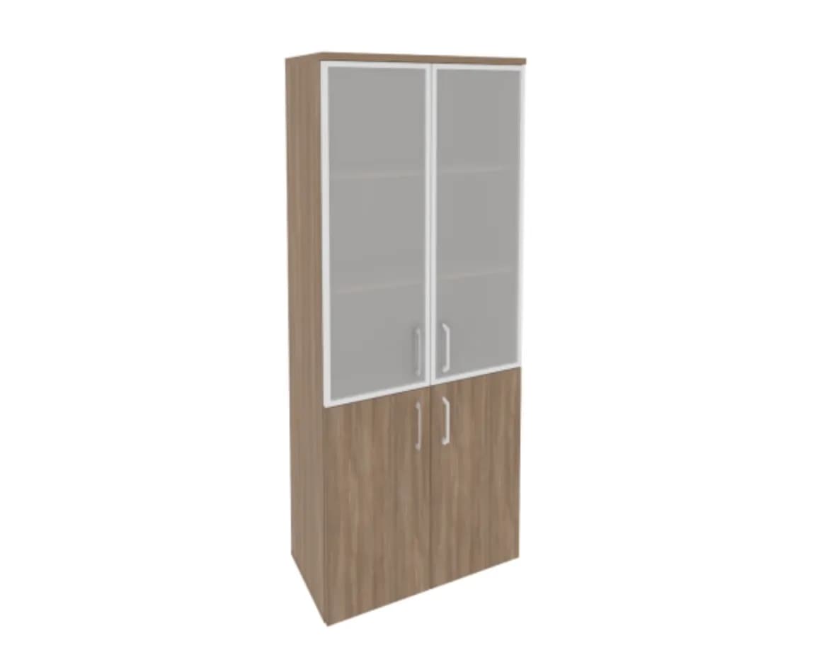 Шкаф высокий широкий (2 низких фасада ЛДСП + 2 средних фасада стекло в раме) дуб аризона