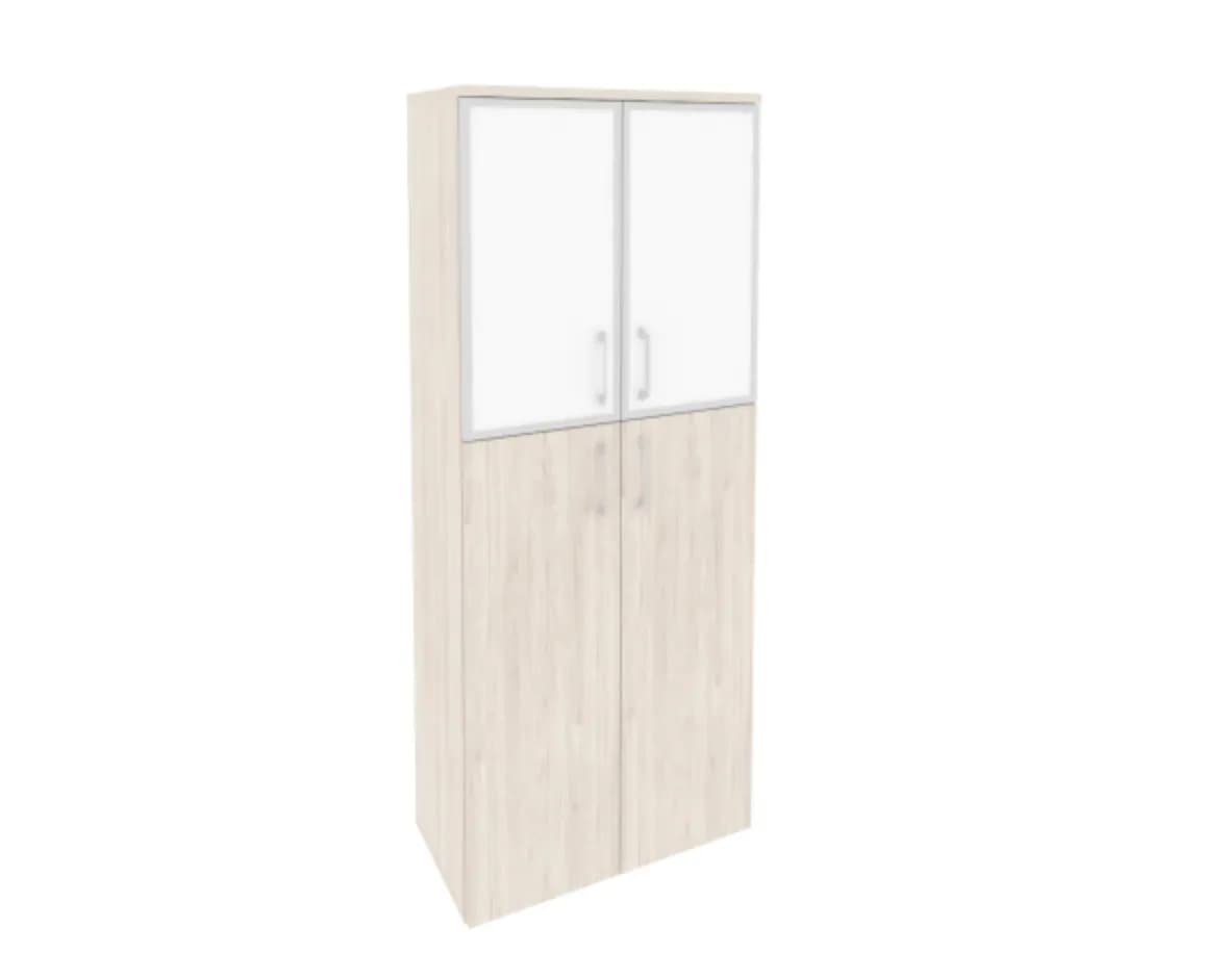 Шкаф высокий широкий (2 средних фасада ЛДСП + 2 низких фасада стекло лакобель в раме) денвер светлый