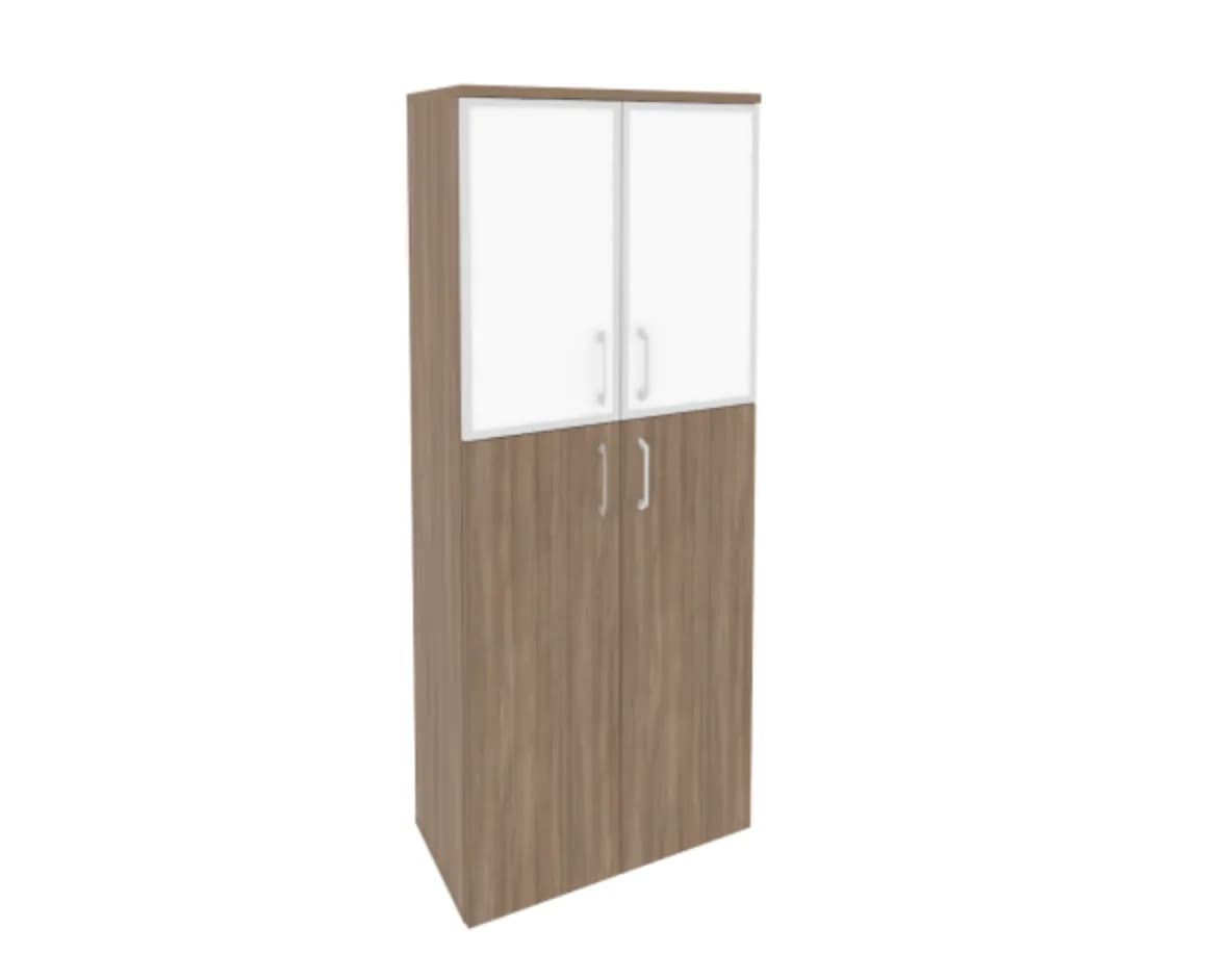 Шкаф высокий широкий (2 средних фасада ЛДСП + 2 низких фасада стекло лакобель в раме) дуб аризона