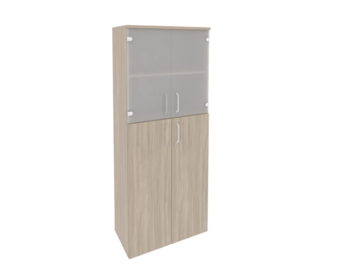 Шкаф высокий широкий (2 средних фасада ЛДСП + 2 низких фасада стекло) дуб аттик