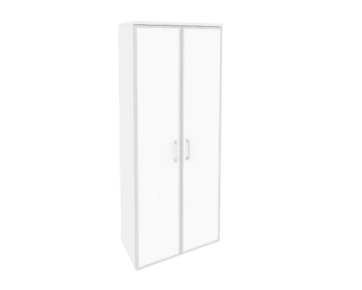 Шкаф высокий широкий (2 высоких фасада стекло лакобель в раме) белый бриллиант